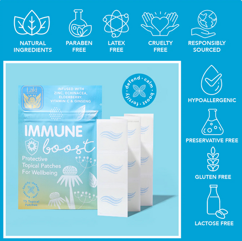 Laki Naturals Immune Boost Patch, is a powerhouse blend of scientifically selected ingredients designed to fortify your immune system and enhance your body's natural defenses. Crafted with precision and care, each patch delivers a potent combination of immune-boosting elements to support your well-being and resilience. Elevate your immune resilience with our Immune Boost Patch – your ally in maintaining optimal health and vitality. Strengthen your defenses naturally and embrace a robust, well-supported immune system.